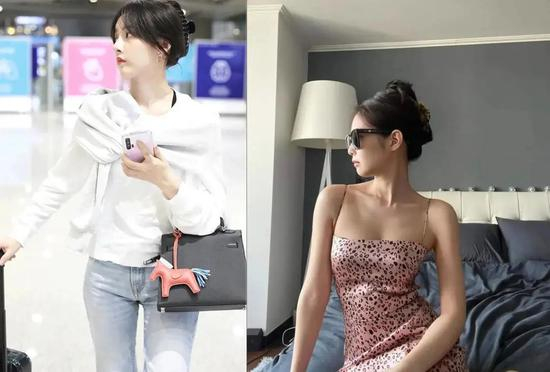 别以为这类可可爱爱的发饰只适合清纯可爱的pljj,走气质路线的钟楚曦也没有逃过这阵时髦风。