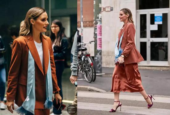Olivia Palermo 头发上的金属一字卡作为一身搭配的点缀,就很干练。