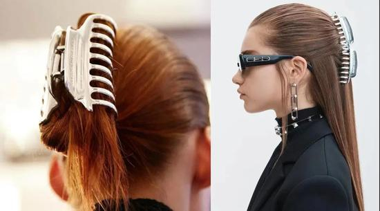 亚历山大王秀场的模特全都用了这种鲨鱼夹,再加上黑色扁长款墨镜,科技感十足。