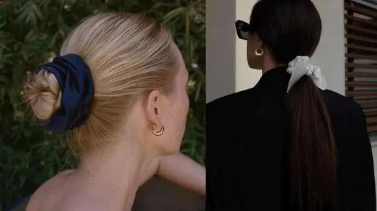 这两年另一款非常受欢迎的发饰是‘真丝发圈’,天热了扎个丸子头,这个季节戴正合适。