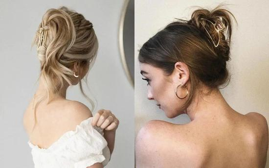 中长发和长发的女生,可以和祖鹅一样,直接盘发之后用鲨鱼夹夹住。划重点:侧边留一些碎发下来,营造出其实我就是随手一夹但也不知为何这么美的feel。