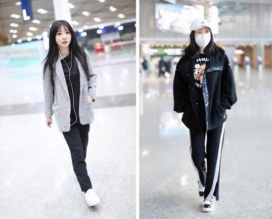 有没有搞错?162cm的柳岩和身高169的张俪在机场同框,两个人的身材比例居然差不多!