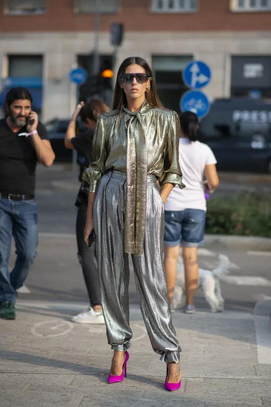 缎面材质也很受宠,它是突出高级感的制胜单品。