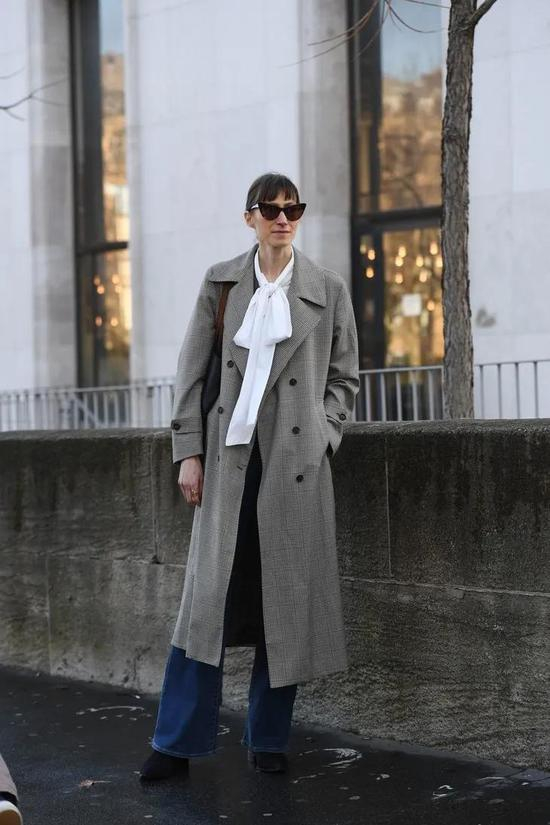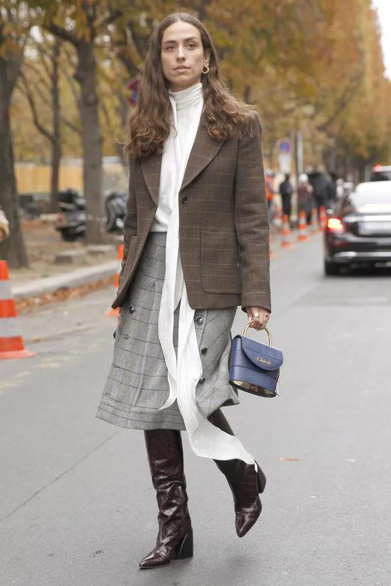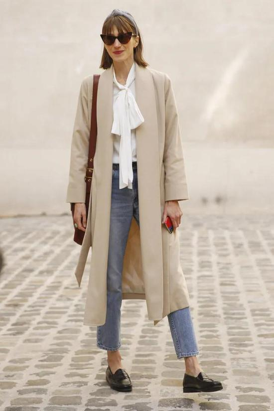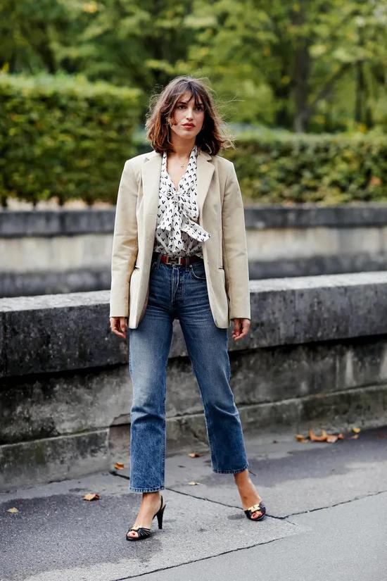 若想要带点休闲感,就可以把半裙换成版型利落一些的牛仔裤。
