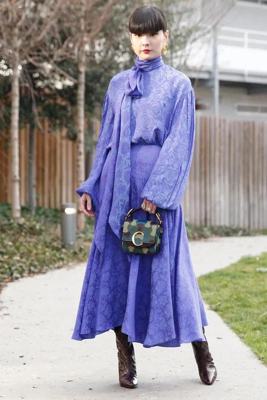 先锋派女孩还会pick彩色的款式,紫色是神秘、黑色的端庄、蓝色的清冷......各种风格手到擒来。