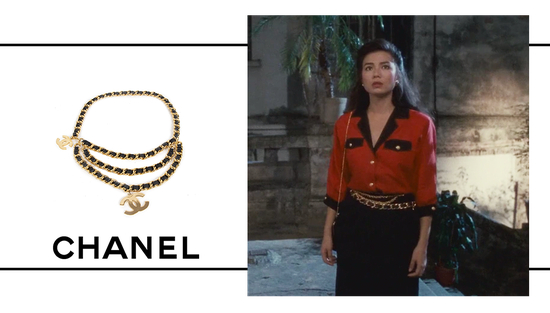 钟楚红饰演的朱锁锁在工作了几年之后,住上了大豪宅,穿搭也越来越时髦,尤其是写着Chanel名字的金色腰链,格外抢眼。