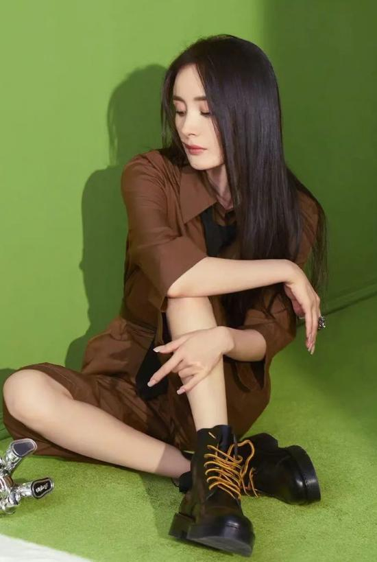 在鞋履上的搭配,则是穿上了今年流行的短款厚底靴。一看就还是那个会穿搭的杨幂。