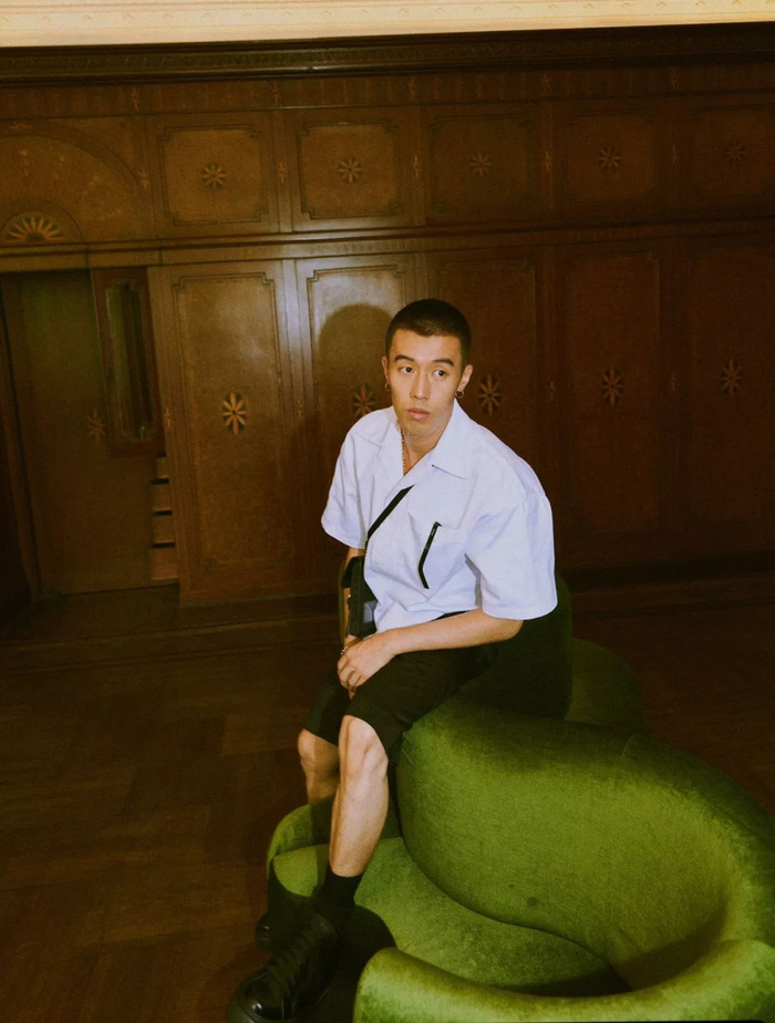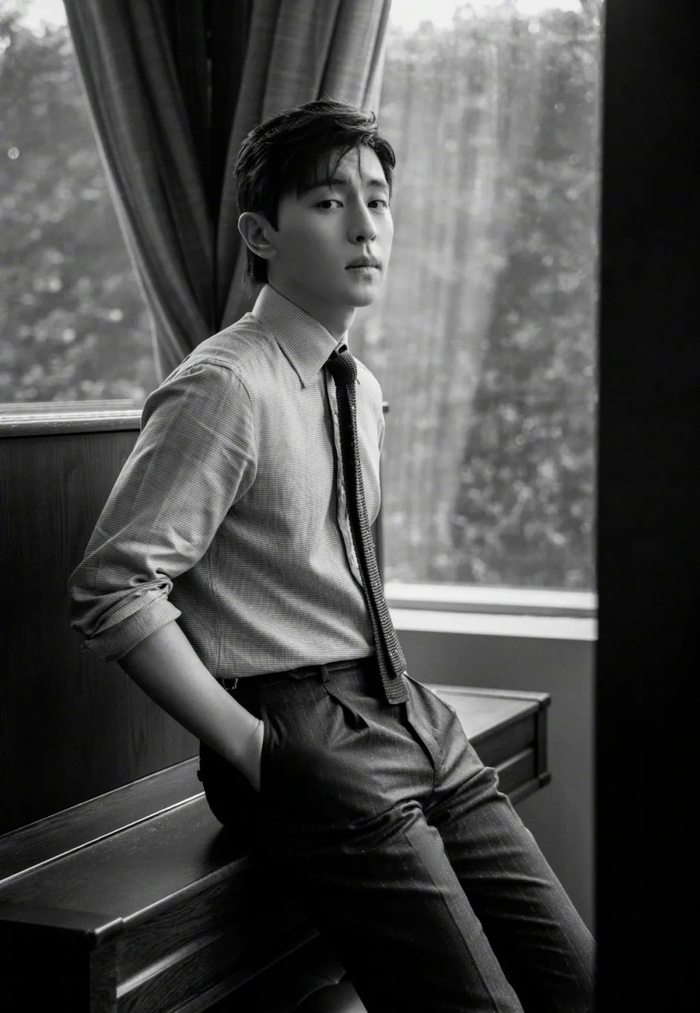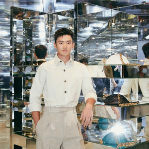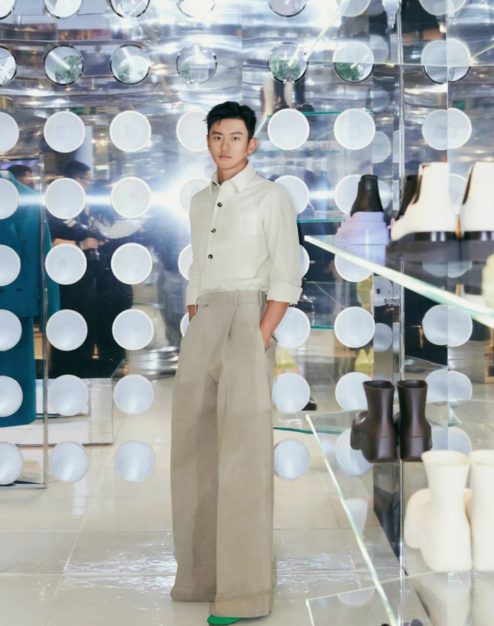 高腰的微喇廓形长裤与简约的衬衫,在宁泽涛身上达成了醒目的对比效果,显出挺拔的身姿,上半身的常规被下半身的“高轮廓”给打破,在夸张与克制之间取得平衡,是儒雅耐看的,也是大胆出格的。