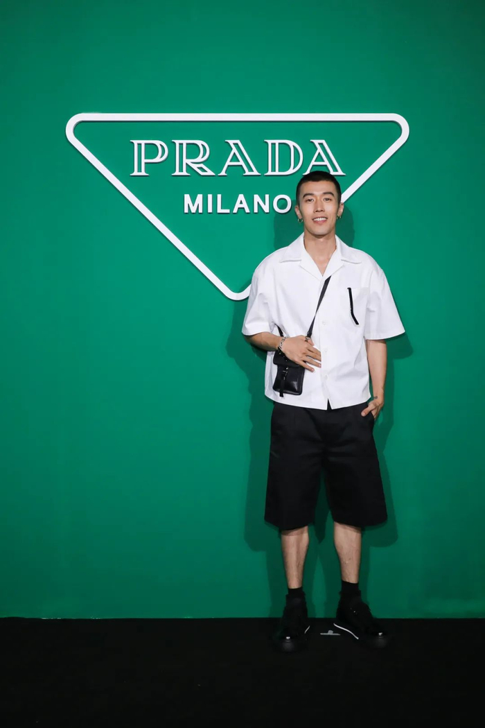 █周游是叶子非常喜欢的一位新生代演员,留着寸头的他有着少年的活力与干净,而早前在出席 Prada 的活动中,他身着白色 Camp 领短袖衬衫搭配黑色短裤。