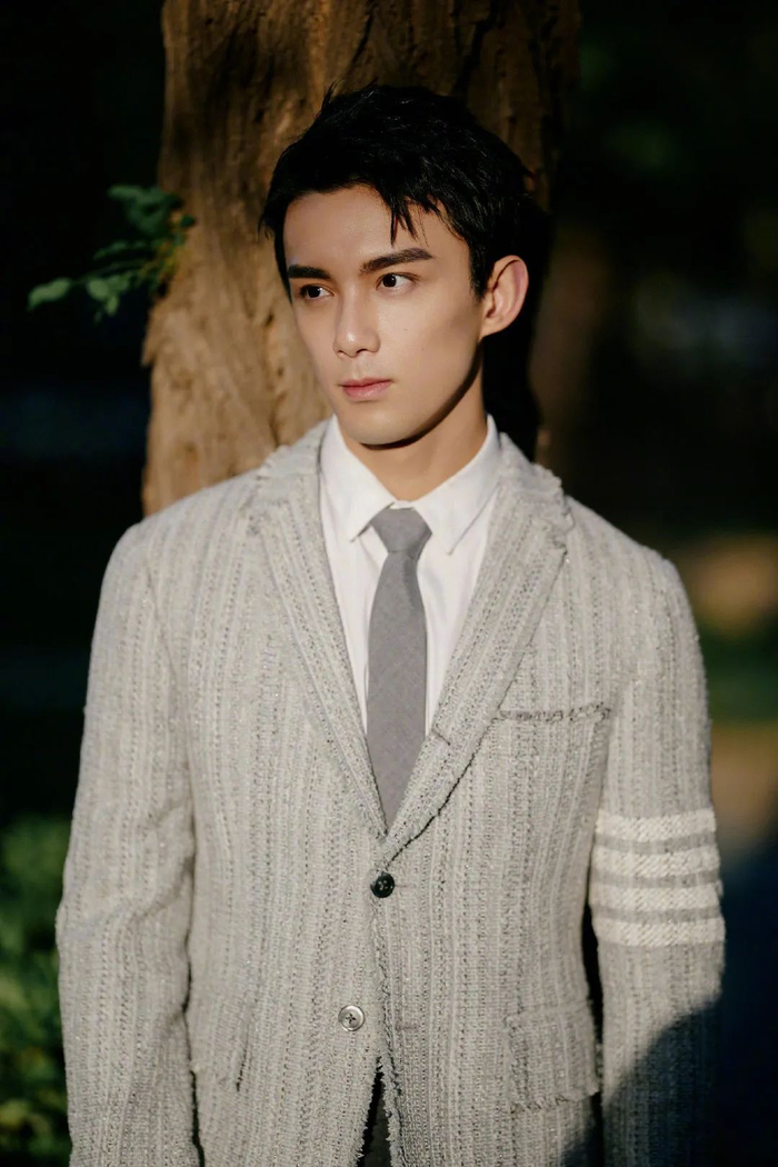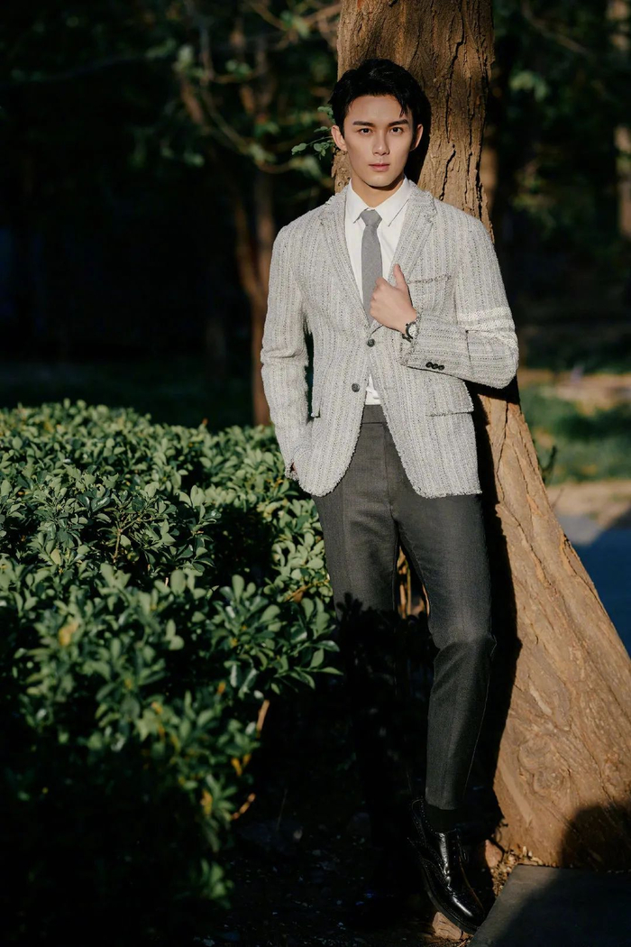 别致的地方在于这件灰色夹克不是常规的西装面料,而是粗织质地,没有那么细腻精致,在全身得体的同时,稍微显露出一股男性的粗犷感,让吴磊的气质变得成熟,也更为硬朗和有型。