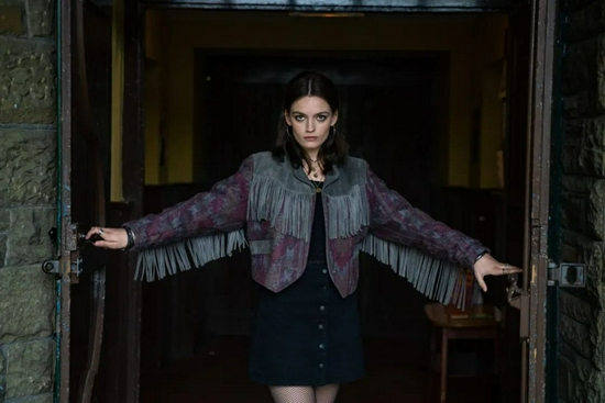 Maeve 自我个性直观显现于其硬朗的着衣选择,时刻警告旁人不要接近。独树一帜的整体风格糅合了朋克摇滚格调以及现代街头感,标志性流苏皮夹克常与其他黑色衣物(渔网袜)相衬。