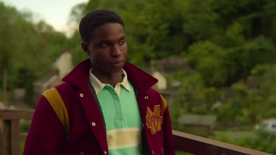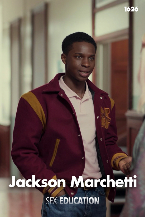 该拼接飞行员夹克是 Otis 着用次数最频繁的一款单品,连同灯芯绒长裤以及 Polo 上衣等,带领观众穿梭至复古的 80 年代美国高中生活。