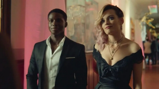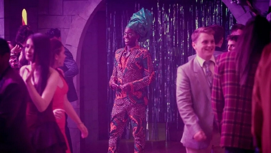 作出改变并不简单,当大家看到 Maeve 身穿黑色礼服出现在学校舞会,那种矛盾的对立效果冲击着不少观众内心。此时,她不再是同学避之不及的霸凌女孩,而是闪耀光芒的优雅女性。