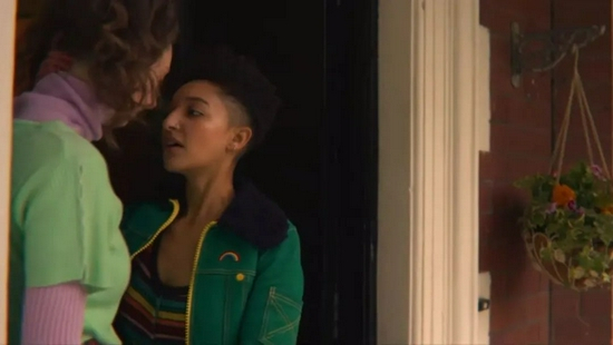 与 Lily 一样,Ola 亦在逐步探索着自己的真实性取向。S2 E5 中的经典一幕,Ola 梦见了自己与 Lily 亲吻:一派超现实的迷幻景象,浪漫的萨克斯风格、旋转霓虹灯光与雷鸣般配乐,屏幕上迸发出她与 Otis 间缺少的化学反应。当镜头切换至现实情境,是 Ola 洋溢着幸福的笑容。