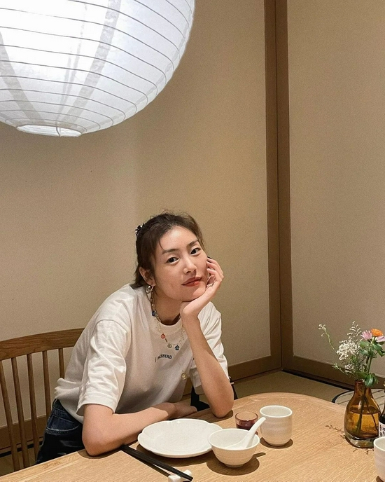 T恤经典百搭,非常实用,也是大表姐私服里出镜率最高的单品之一。上面这套,大表姐在配饰上选择用彩色琉璃花朵项链点缀,用大肠发圈扎起马尾,充满元气的Feel就出来了。