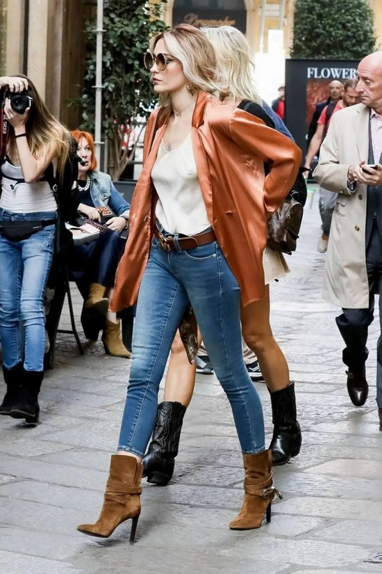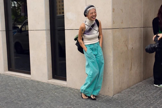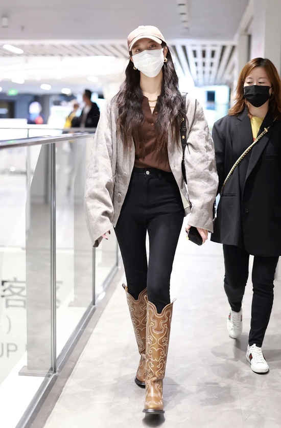 捕捉到一直酷酷CiCi,她的咖色体现在内搭和牛仔靴上,大家可以自行比较这几位的vibe,不一样,但都够时髦!