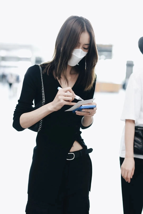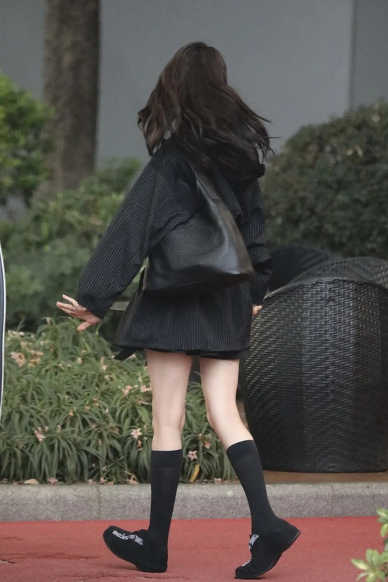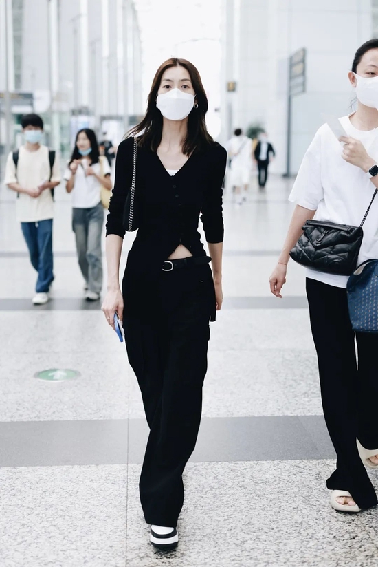 All black走机场的她好久没见到了,狠狠放在第一个!V领和衣服下摆的开衩设计突出比例和精致感,这一套下来显得她身材更修长长长长……