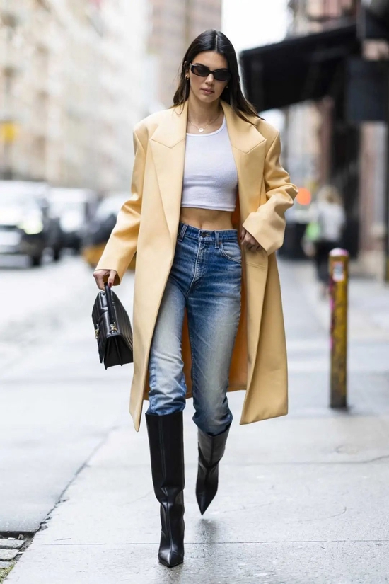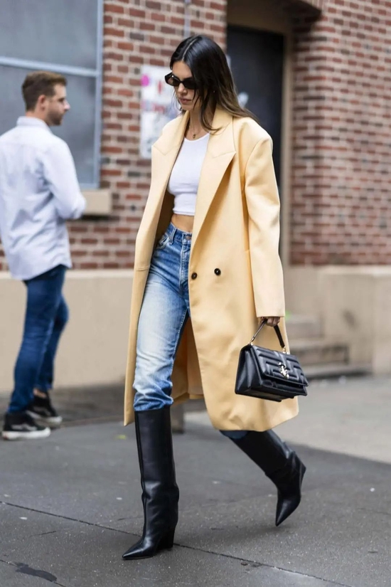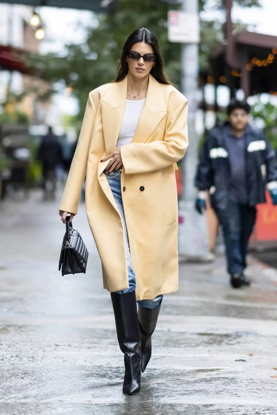 纽约温差雀实大!下了场雨后豆总就穿上了大衣,奶黄色好温油诶~脱了是辣妹,穿上就是气质lady。
