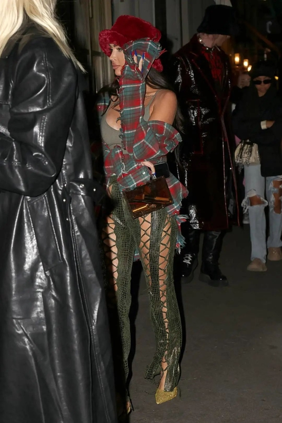 请问狗仔大哥这是在拍什么角度清奇的街拍大片啊!中世纪的吸血鬼情侣穿越过来了么是(还是贵族那款的)?梅根的鳄鱼纹皮裤和枪爷的大衣油亮亮的,看着就很Rich。