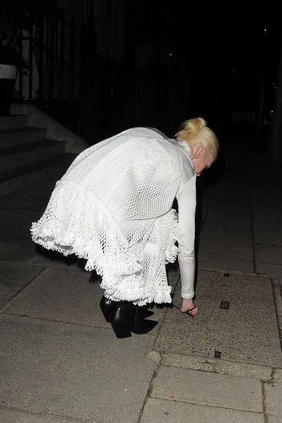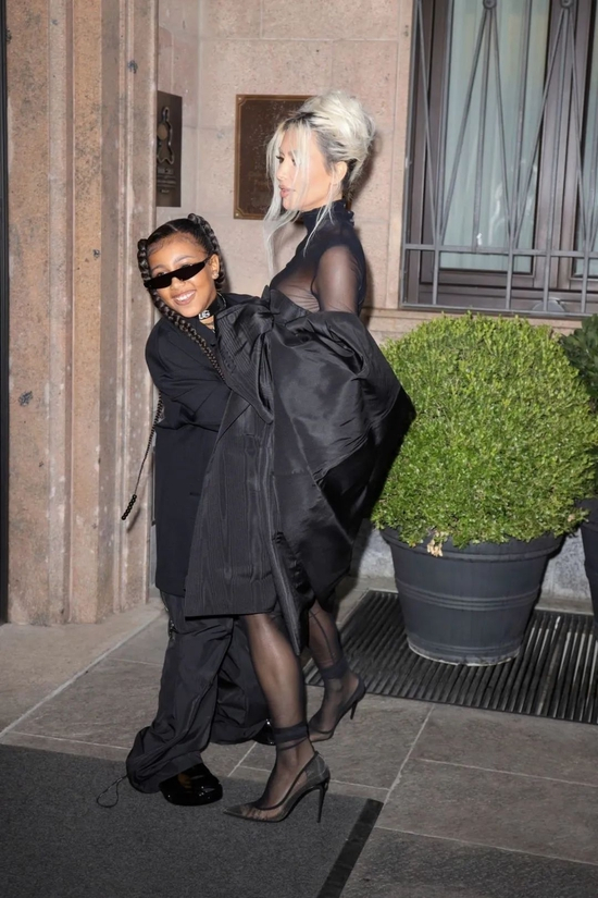 再说金姐,她这个白金发色穿黑色真的超美超有气质,用薄透的黑丝打底,未免太性感惹(而且,金姐真的廋了好多)。