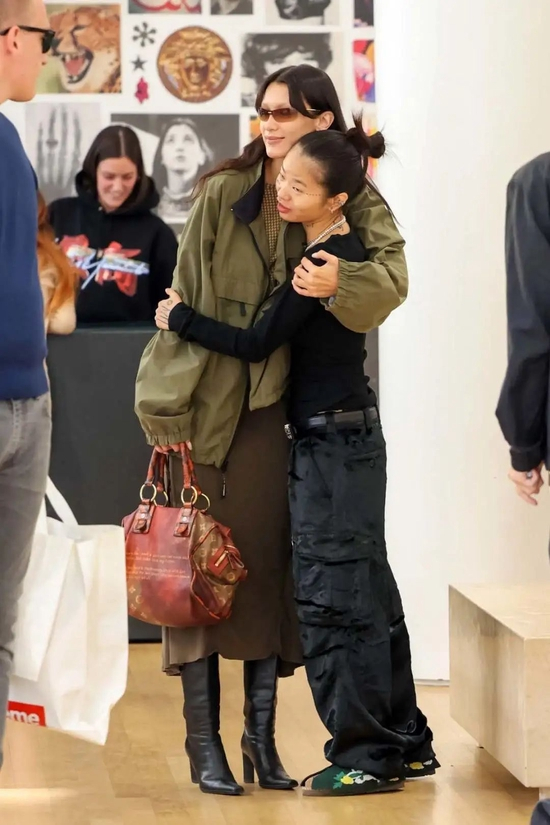 和男友Marc一起shopping的贝贝。日常的她依旧是很casual的复古风装扮,带着她独树一帜的风格,和粉丝们抱抱也是够亲切呢。