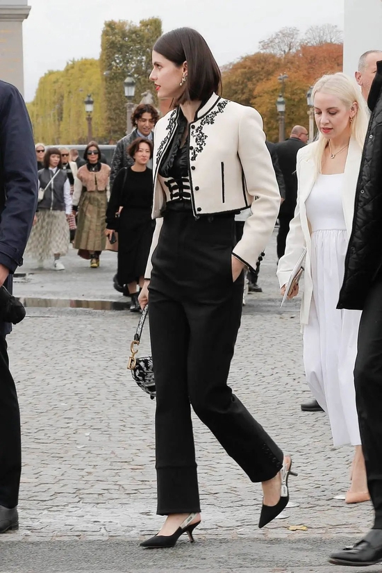 巴黎妹也来时装周了,她这次整个打扮的调性一下小女人了起来,之前骑小摩托车的假小子feel无影无踪。