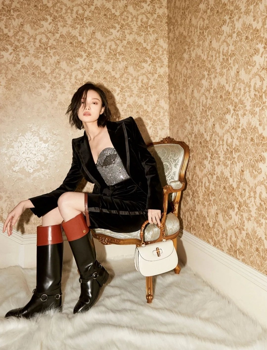丝绒西服套碰撞皮革长靴也未尝不可,多元面料更显刚柔并济的魅力。