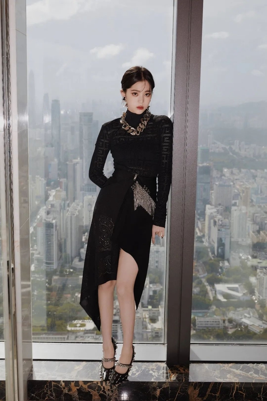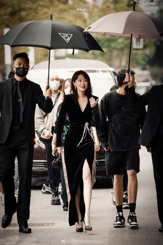 最后来说说秋冬季节必不可少的黑色针织单品,乍听起来软糯触感和气场无缘,但其实适当造型,就能让它“改头换面”。比如欧阳娜娜这身曾经较为出圈的造型,暗纹针织连衣裙让性感若隐若现,夸张的金属配饰,将气场一步到位。