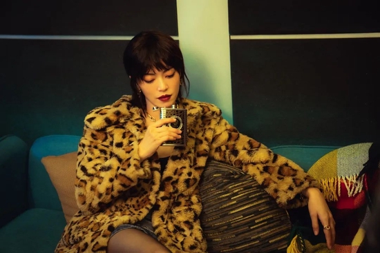 张扬的豹纹毛绒大衣,配以暗红色红唇,足够高调,轻而易举地将气场拉满。