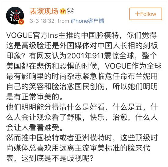 导语:VOGUE官方Ins的中国脸模特引争议,是刻板印象还是高级脸?