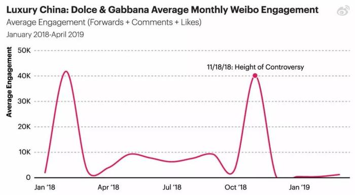 2019年第一季度Dolce & Gabbana在微博的社交媒体参与度同比暴跌98%。在天猫、京东甚至Net-a-Porter 中国官网上依旧搜不到Dolce&Gabbana的产品。