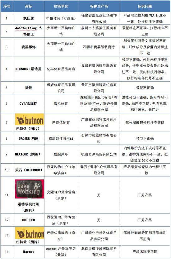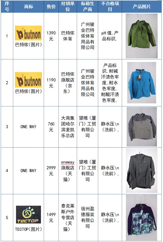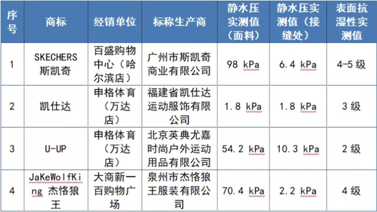 60批次冲锋衣测试 狼王与斯凯奇等品牌不达标