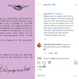 Gucci创意总监Alessandro Michele在品牌Instagram帐户写道:“我将放弃传统时装周节奏,重新找回自己的节奏。”