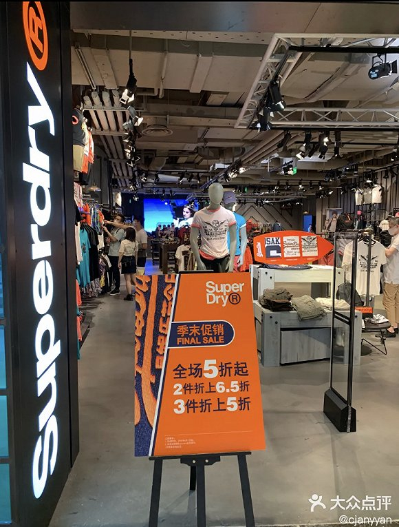 根据消费者在互联网上分享的照片信息,Superdry位于上海、北京等多地的门店正在进行“全场商品2件6.5折,3件5折”的大幅度打折,打折原因或是由于撤柜清仓大甩卖。