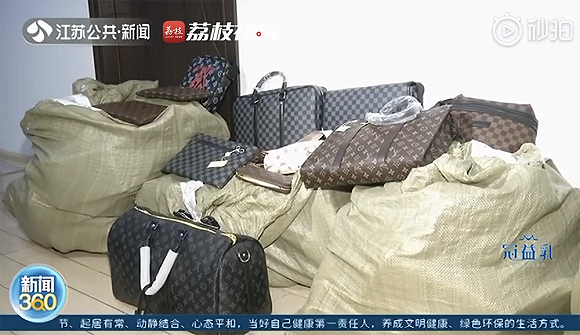3月31日,南京市场监管部门对某市场展开突击执法检查,查获了140件假冒LV商品,包括手提包、钱夹、钥匙扣等等,装满了7个麻袋。一位假包经营者表示,市场里经常有人拿着装满假奢侈品的大袋子,询问他们要不要货,处理的包包只要几元钱一个。“我就拿一些5元、10元的货,加个5元钱就卖掉了。”