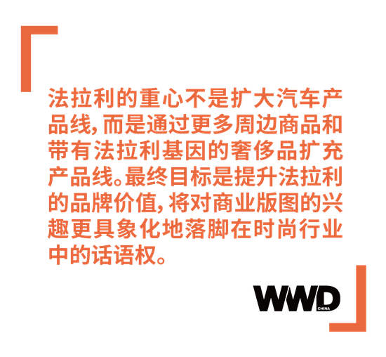 关于高端汽车品牌在时尚产业中的进一步深入,是由 Exor 集团控股的高端汽车品牌法拉利将在马拉内罗发布首个奢侈品成衣系列,包括男装、女装和童装。