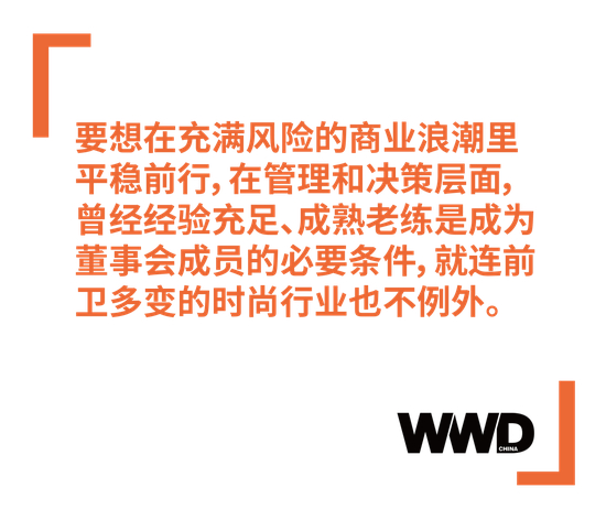 他们掌舵着庞大的集团巨轮,为如今时尚奢侈品行业“一超多强”(在奢侈品行业中,LVMH 集团是“超级大国”般的存在)的格局奠定了基础。要想在充满风险的商业浪潮里平稳前行,在管理和决策层面,曾经经验充足、成熟老练是成为董事会成员的必要条件,就连前卫多变的时尚行业也不例外。