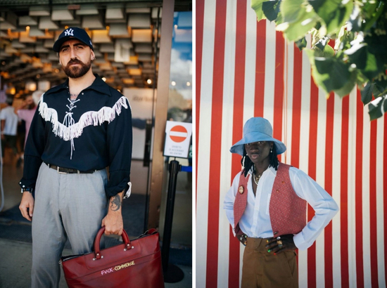 相比之下,看回会场上一些当下流行的时髦着装反而让人顿觉乏味,大概是审美疲劳的关系,近年各种雷同的大廓形、Oversize设计实在霸屏了太久。并不是说造型不养眼,一些恰当的色彩、图案碰撞依旧具备吸引力,只不过在与其它更加风格化的造型进行对比时,难免就会察觉到潮流的平庸一面。