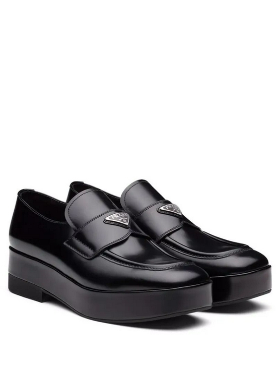 此款鞋子外观具有复古设计风格,鞋头呈现方正线条,与充满现代感的厚底形成对比,将不同廓形和传统设计元素相融合。以及极具辨识度的三角金属 logo 亦为鞋履增添标志性特色。