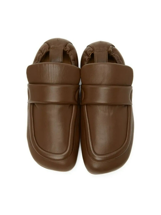 今天推荐的这款棕色软底皮革乐福鞋,不仅在材质上采用柔软的皮质面料,还具有与众不同的不规则方形鞋头,鞋舌处带有隐形松紧带,舒适度十足。