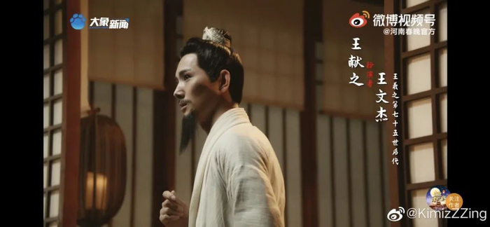 以《中秋帖》为灵感创作的舞蹈《墨舞中秋帖》中,导演组请到王羲之第75世后代王文杰,在节目中扮演王献之……