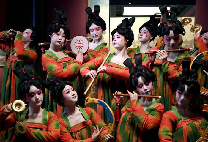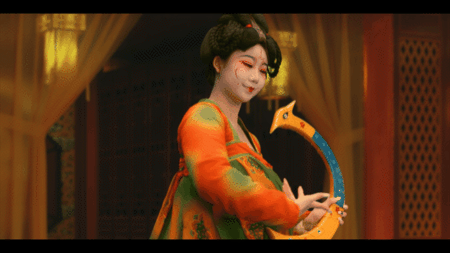 在这样的思路下,她与团队里的伙伴们开始研究如何把唐代绘画中的舞佣形象融入到作品中,将画中的世界还原、补足。