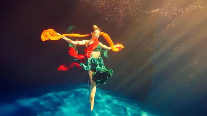 为了在舞蹈中还原画中的洛神,突出神性,导演组选择用真实的水下拍摄代替特效,水下的每一个气泡、每一束光都是真实的。