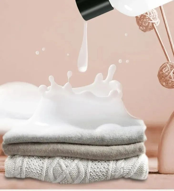 羊绒衫的纤维耐碱性差,普通洗衣液会让羊绒纤维变得脆弱而失去光泽,所以清洗羊绒衫一定要用专门的羊绒洗衣液。这种洗衣液一般都含柔顺剂,不需要再添加柔顺剂就能让衣物保持蓬松柔软。