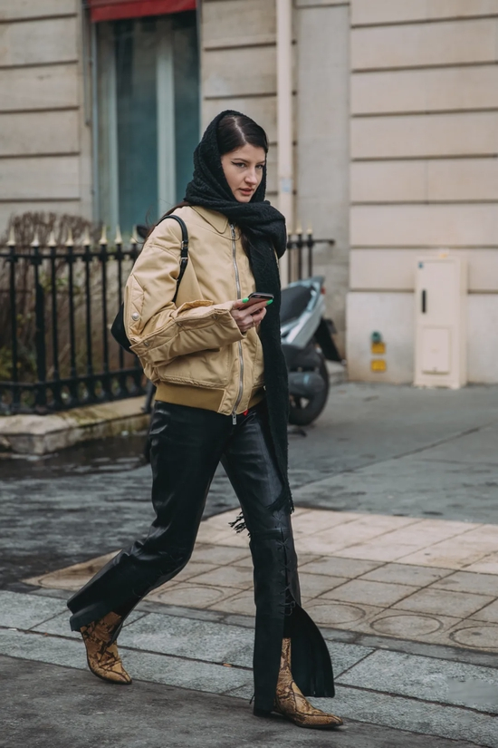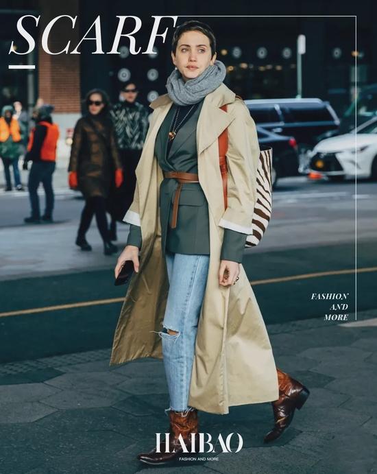 问题来了,厚外套里面空着会跑风怎么办?喏~围巾派上用场!它不仅是“加了一笔”的时尚单品,更重要的是塞住缝隙,让凉风钻不进来。