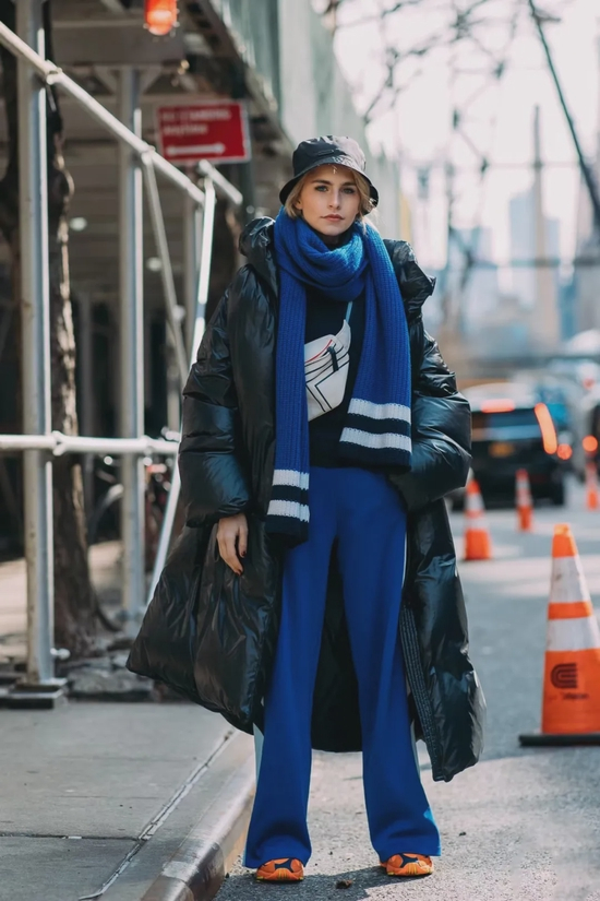 深蓝出现在夏天的时候最会给人过于浓郁的感觉,但是冬天穿它有种静谧又高冷的感觉,而且刚好,各种蓝今年也这么火,顺手赶个时髦吧。