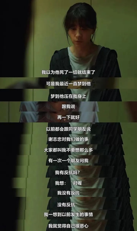 关于这一点的父权社会视角,林奕含早已写在《房思琪的初恋乐园》里:“他发现社会对性的禁忌感太方便了,强暴一个女生,全世界都觉得是她自己的错,连她都觉得是自己的错。”
