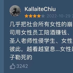 播客“随机波动”有一期里面有一段话:在一个父权制社会中,男性是一种均质而连贯的存在,而他们希望女性是被分割、被分配,作为一种男性的补充而存在。无论是在公共空间安全不受骚扰的权利,还是我的身体我做主的堕胎权,女性想要争取的,无非是像男性一样作为一个完整的、连贯的人而存在的权利,是不再作为碎片,不再作为提供性快感和性愉悦的客体、提供子宫孕育婴儿的客体以及提供情感价值和养育服务的客体而存在。