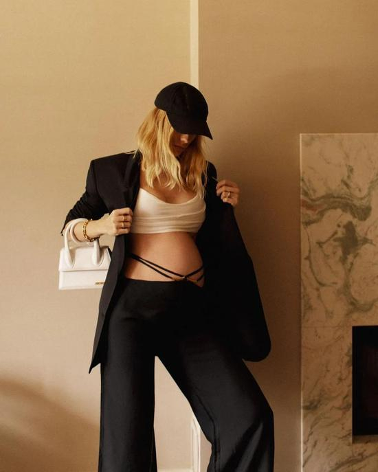 而埃琳娜之所以在Ins上火起来,出了时尚圈身份加成,也是因为她经常会晒出自己的孕期照片,而且穿搭也依然时髦大胆,模特属性让她看上去状态很好。