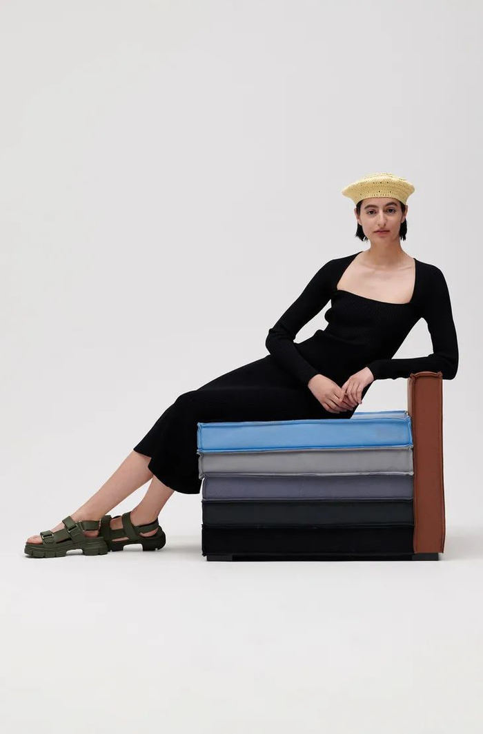 连衣裙来自凭借鞋包走红的美国小众品牌STAUD,赢得大家喜爱之后,设计师顺利拓展服装线。延续挺括以及耐看的设计,服装线一路备受好评,其中每次上新出镜率超高的针织裙单品俨然成为品牌主打。